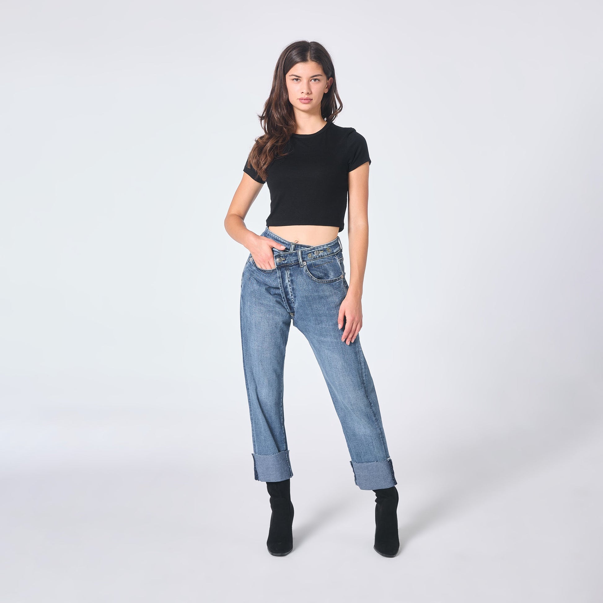 Selina™ Asymmetrical Jeans omdefinierar enkel coolhet med en djärv twist på klassisk denim.