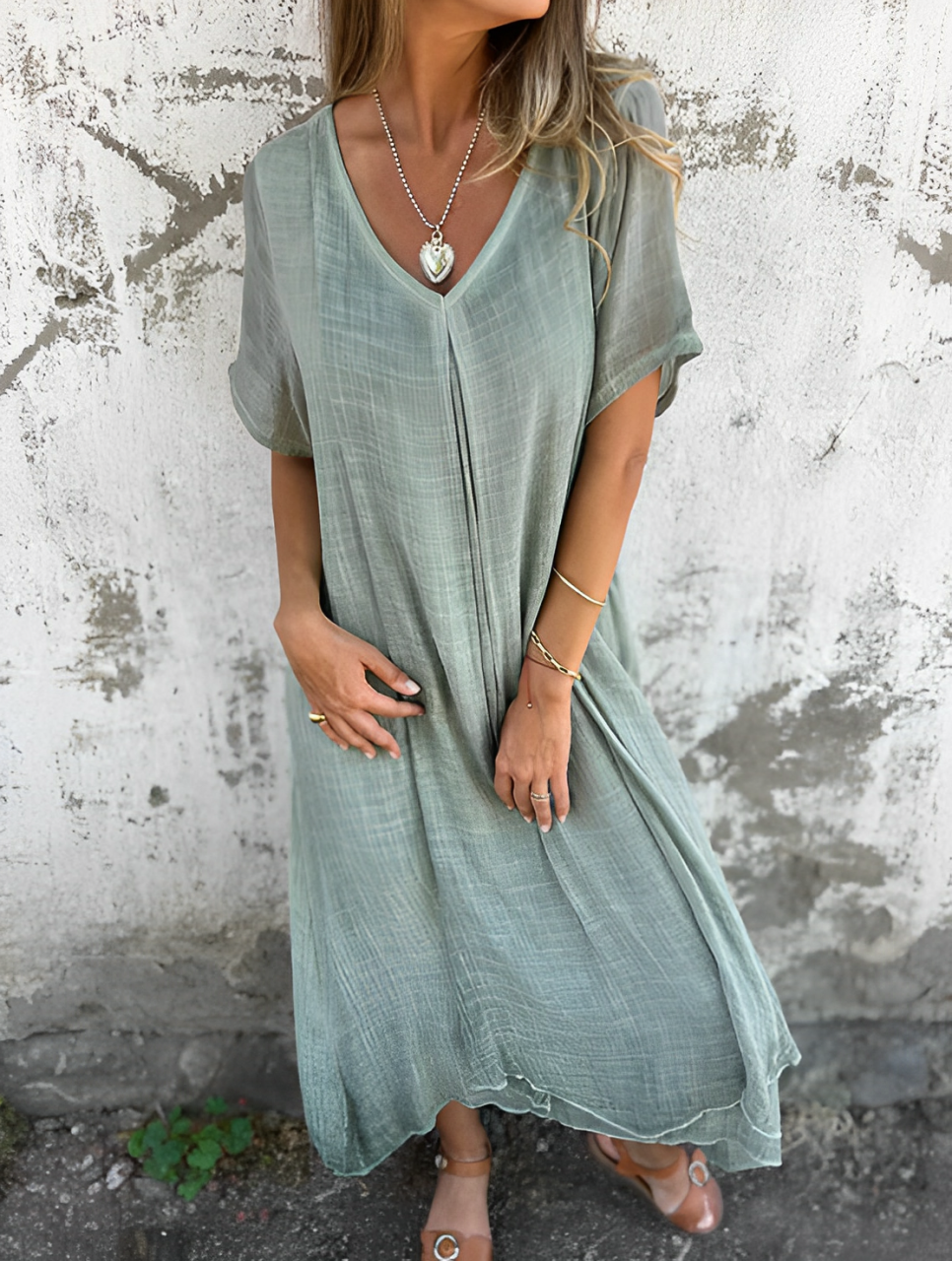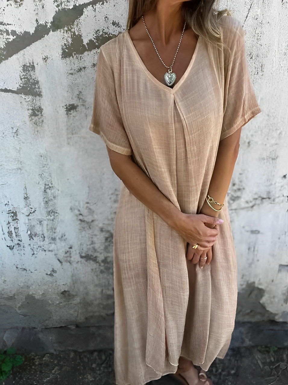 Zenova™ Carmen |Klänning i bomull och linne med V-näklinje